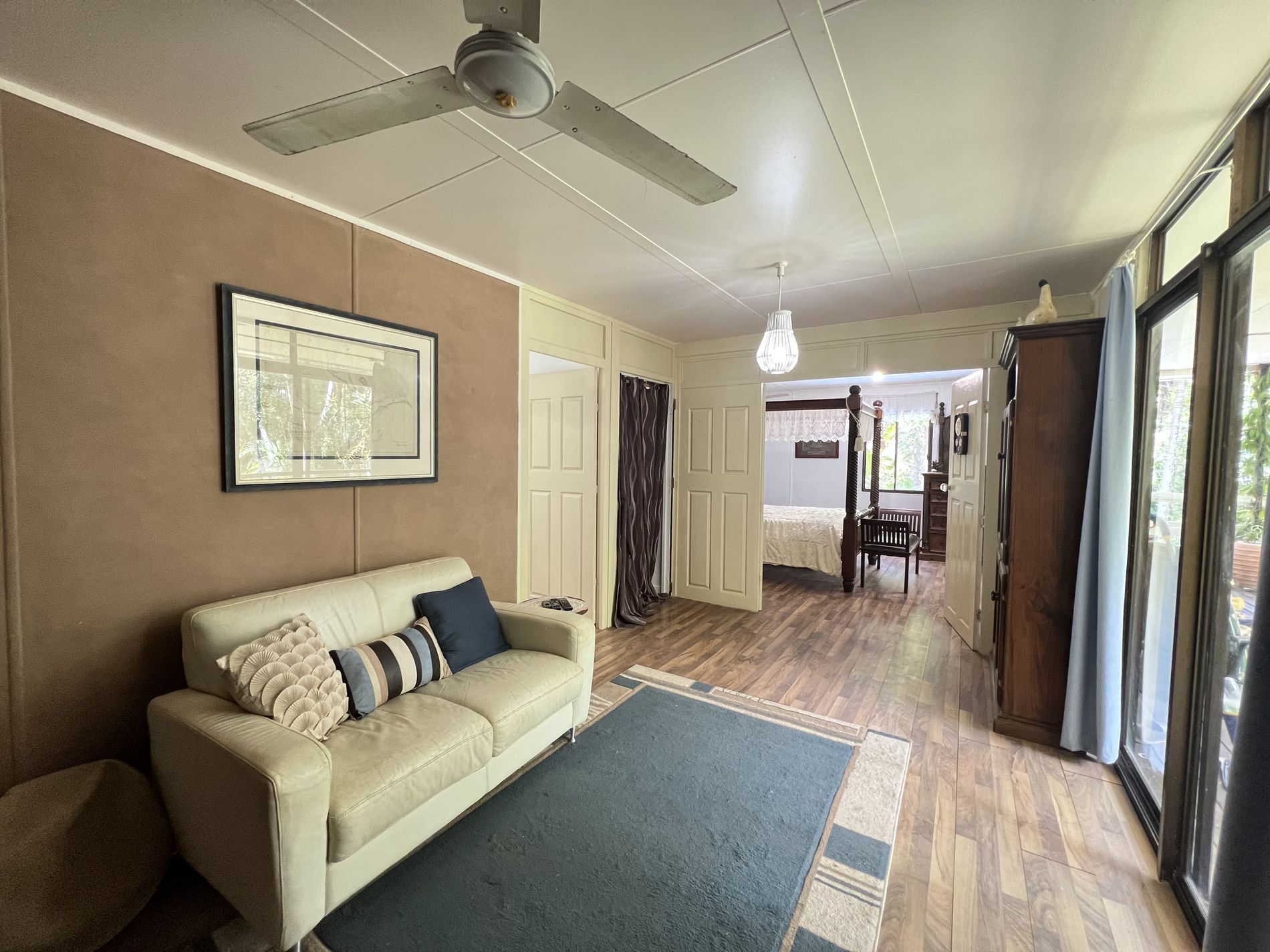 The area of this home is quiet and private, and the land slopes down to the riverbank where you can sit and watch this peaceful flowing tidal river and put a fishing line in. There is abundant amount of fruit trees that are located throughout the property. The ample water comes from a bore, that is great water to drink and to keep your plants and lawn green all year round.