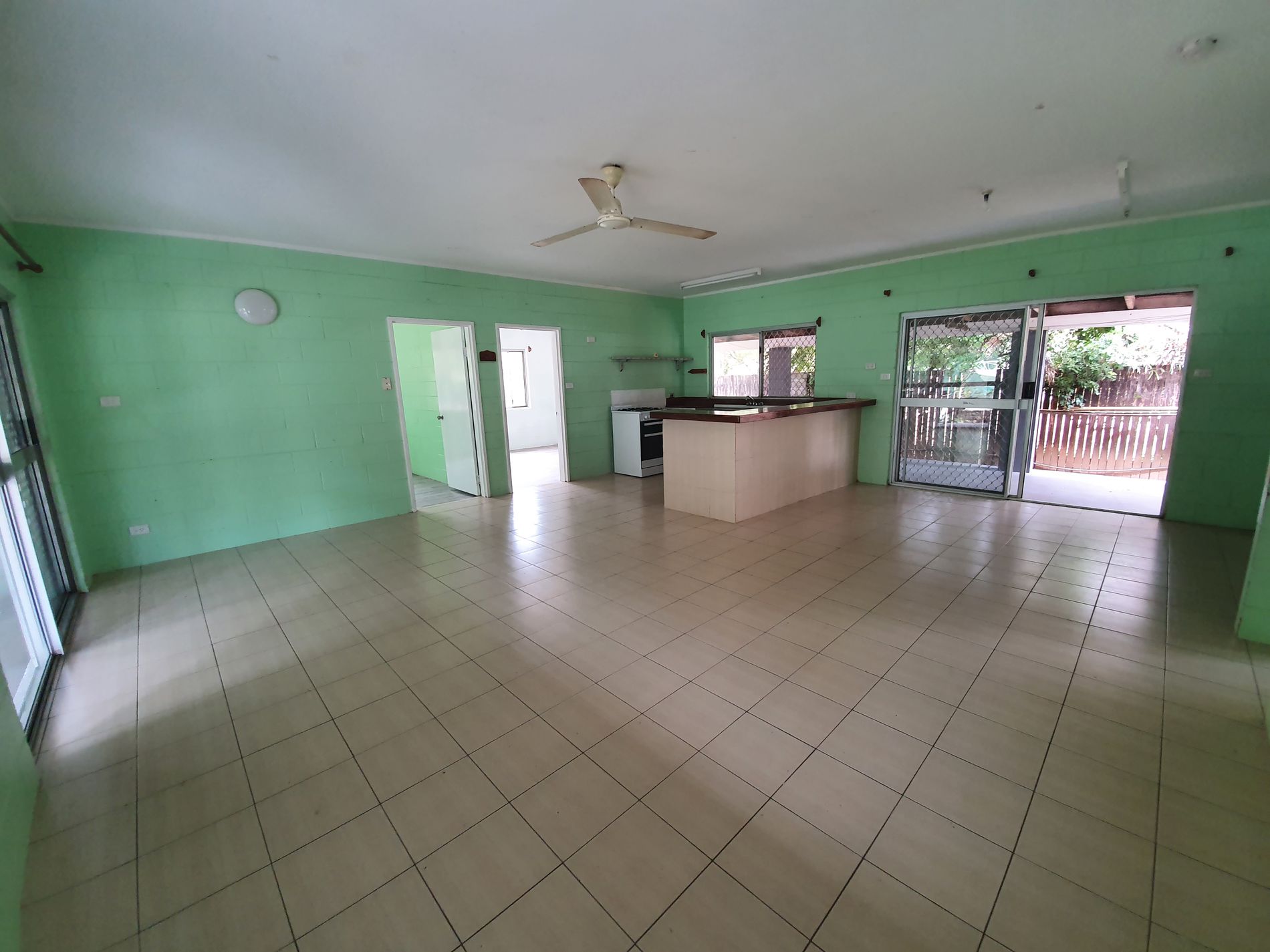 Built from cool bessa blocks, this strong standing easy living home has a large open plan kitchen & lounge room with side access to catch the breeze as it flows through the 2 full length verandas on either side of the house.