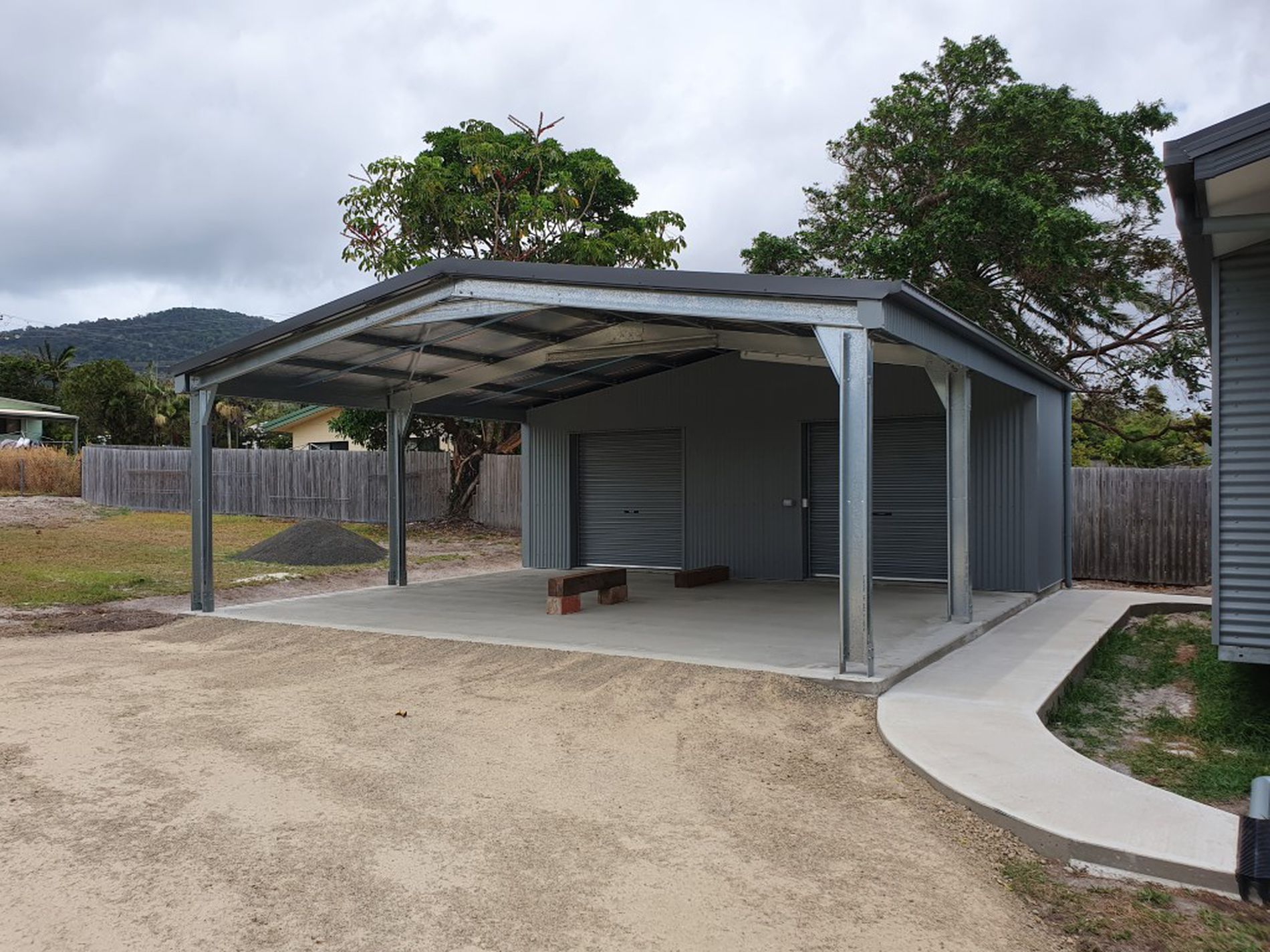 Carport and fenced yard around the house.
