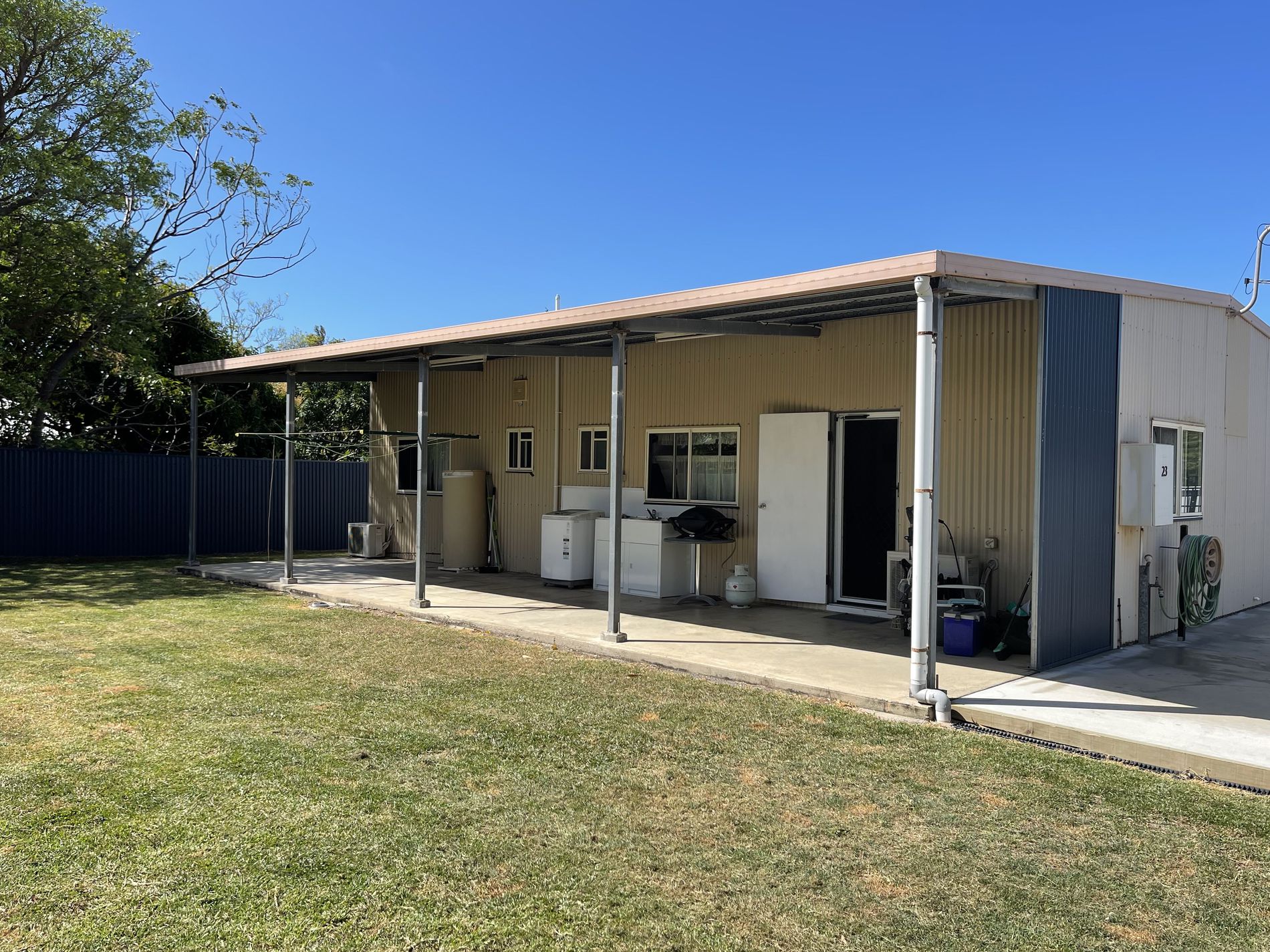 This 2 bedroom, 1 bathroom home on 1012m2 is on a corner lot in town and close to hospital and schools.