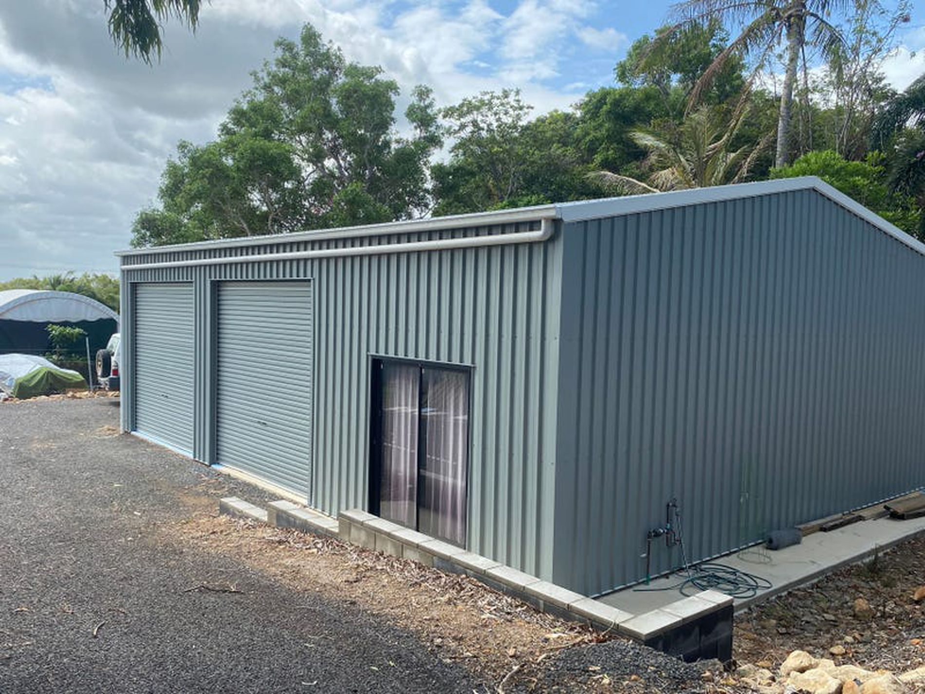 The shed is built at the rear of the property leaving an open area for parking, expanding or building care takers accommodation.