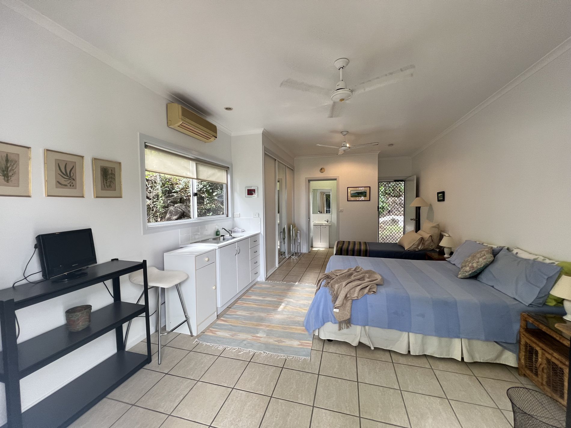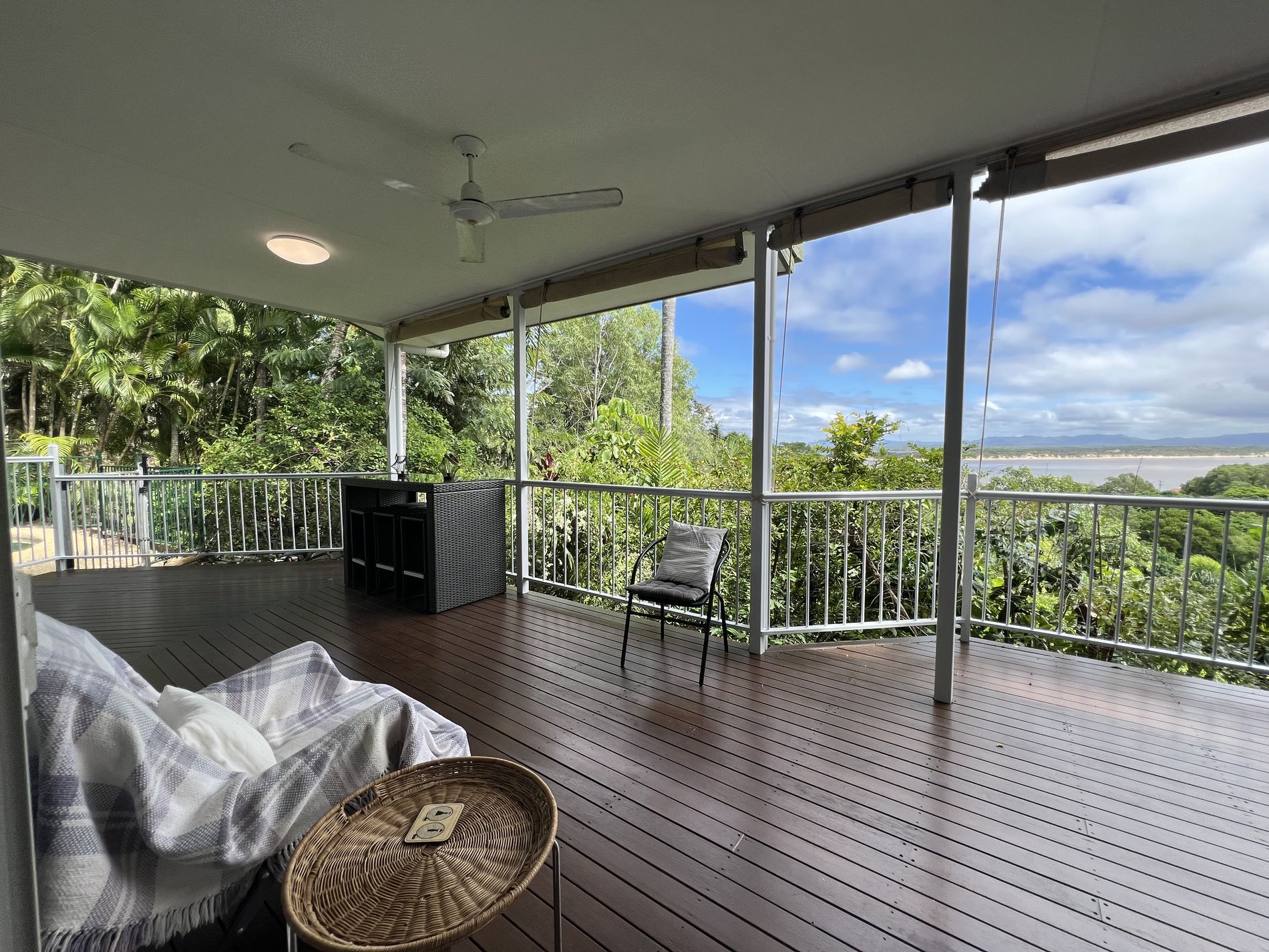Guests or yourself will be comfortable in one of the large bedrooms on the ground level in the house with wall to ceiling built in cupboards, air conditioning and a safe. Or spoil yourself or your guests and walk up the internal stairs to the master bedroom with a walk-in robe, good size ensuite as well as air conditioning with exquisite views to wake up to. Sit and relax on the large balcony and relax watching the fiery sunsets and entertaining electrical storms. The everchanging views can also be seen from the 3rd bedroom that also has an ensuite, built in cupboards and air conditioning. This room has its own separate access from the rear near the laundry and could be rented out or used for Airbnb with some small cooking facilities and a BBQ on the deck.