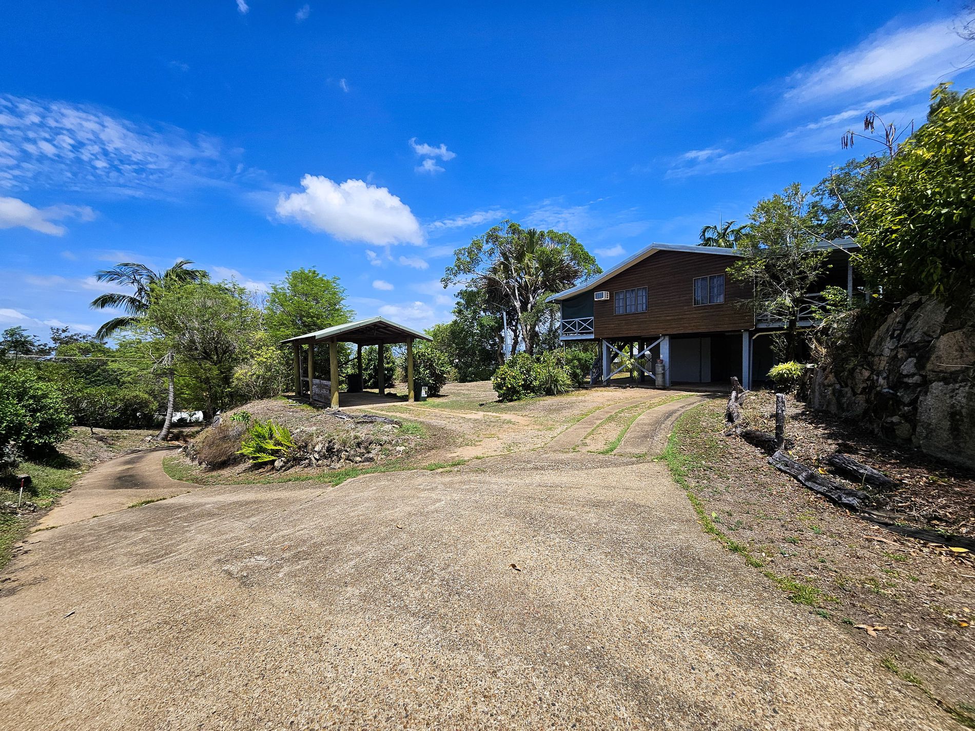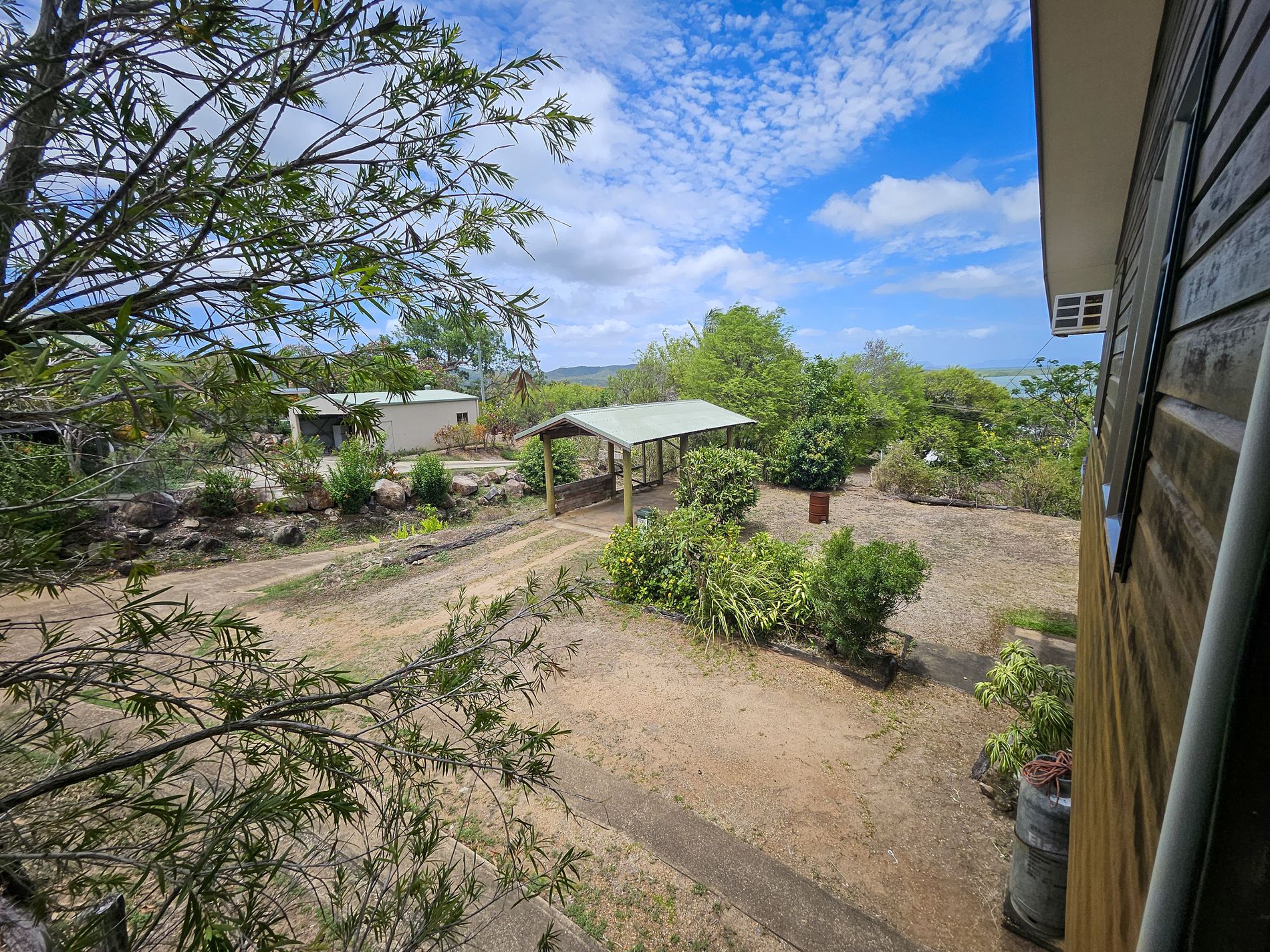 Two story house on a large block with carport and views.