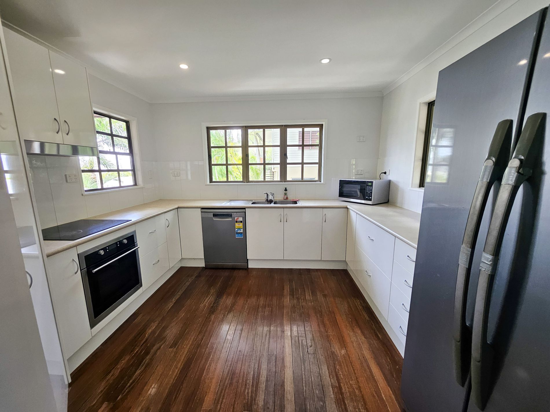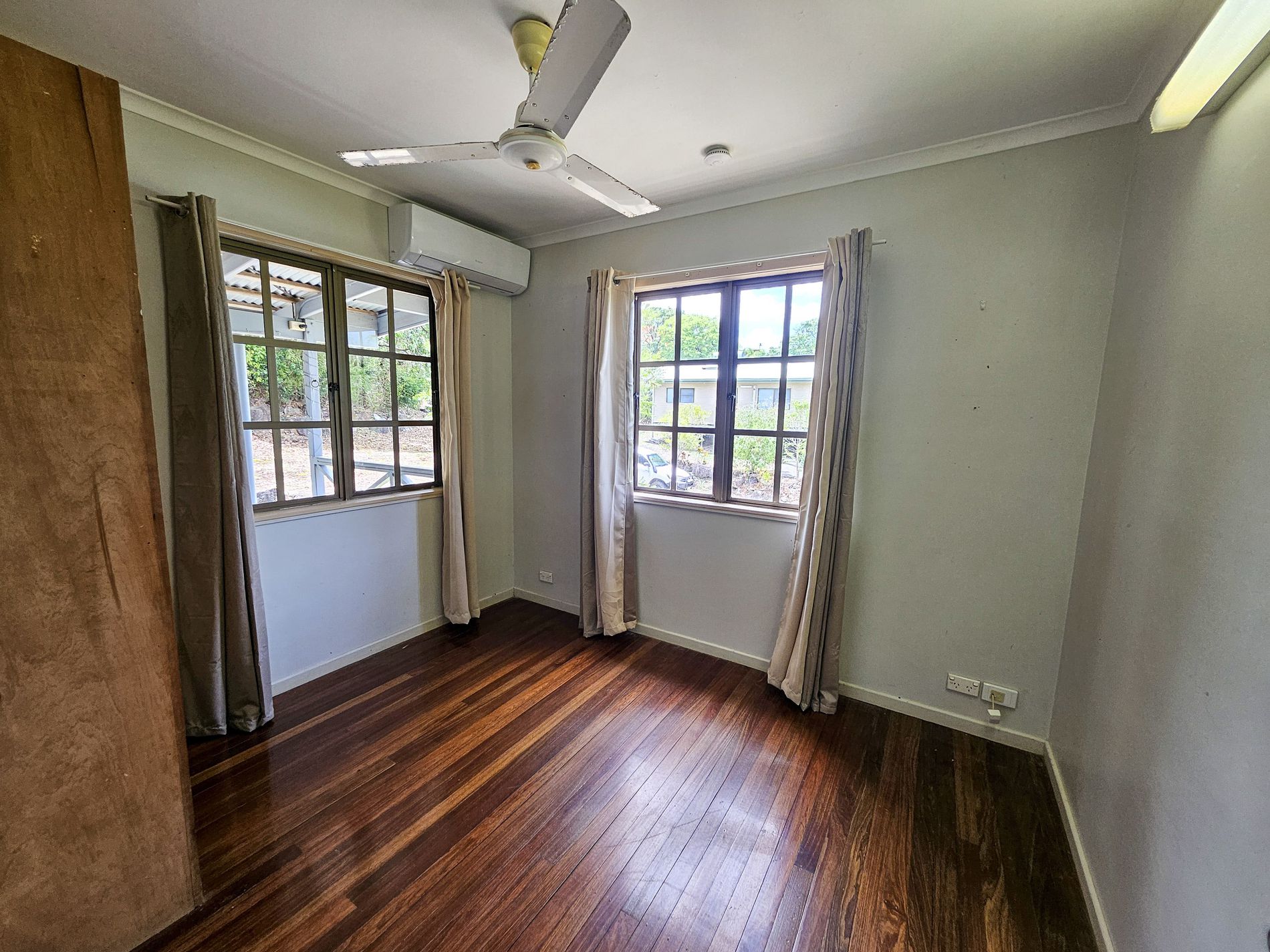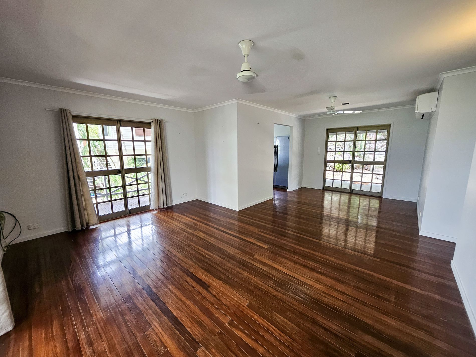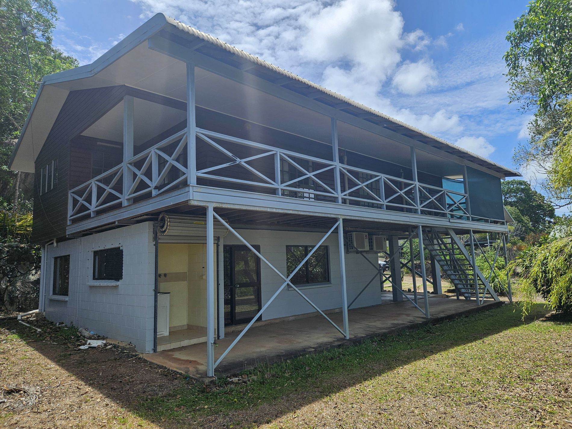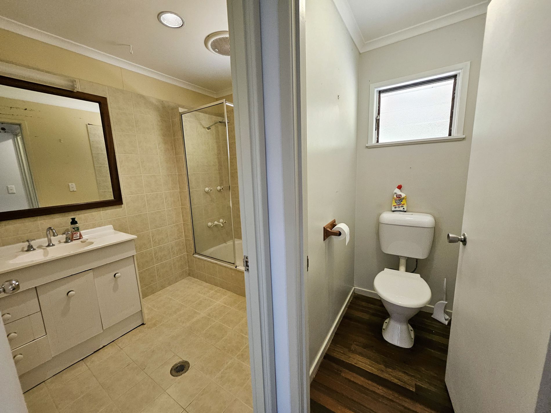 Upstairs has wooden polished floors, a new large kitchen and 3 bedrooms, 2 with aircons and built in cupboards. Bathroom and seperate toilet.