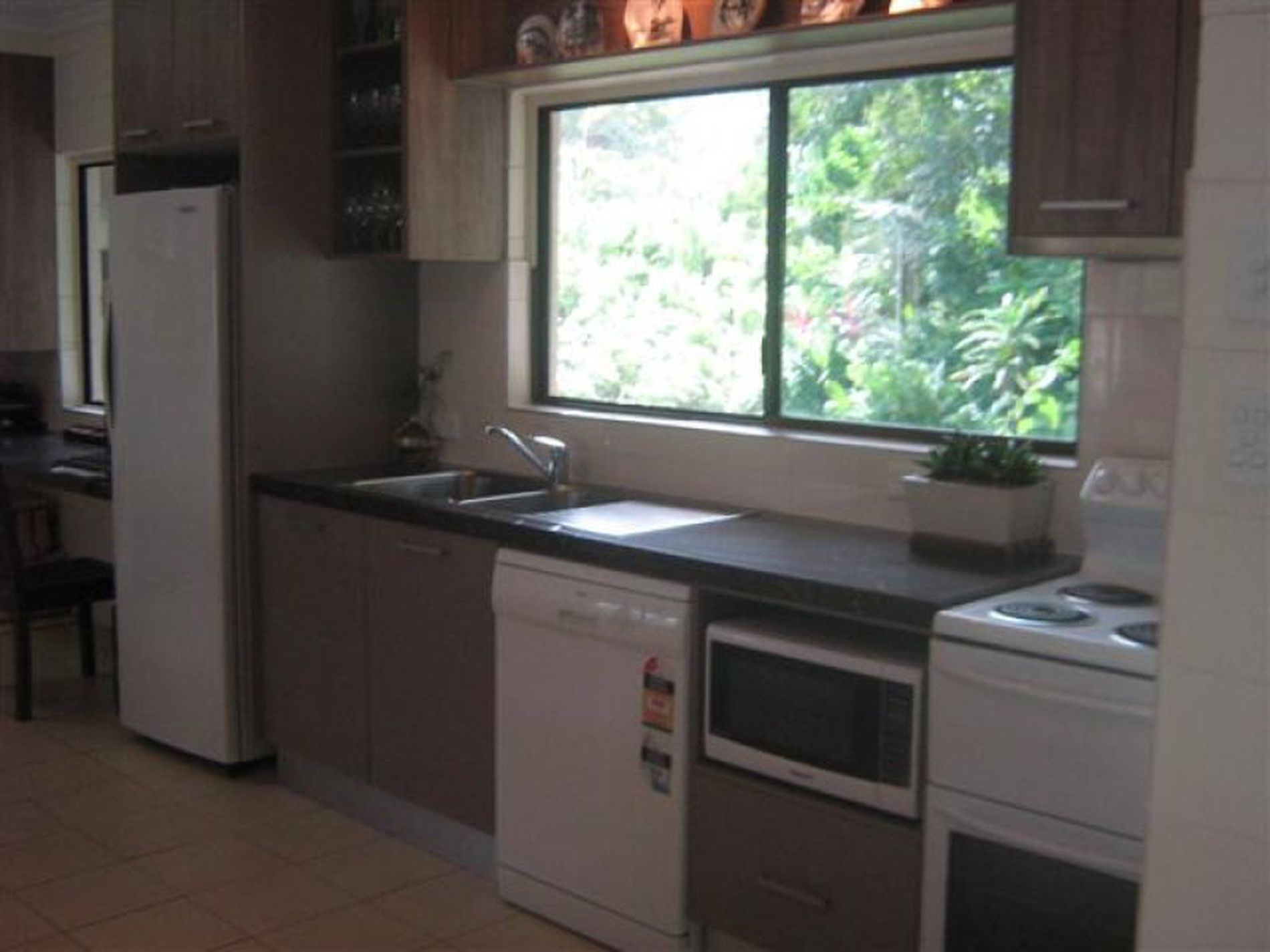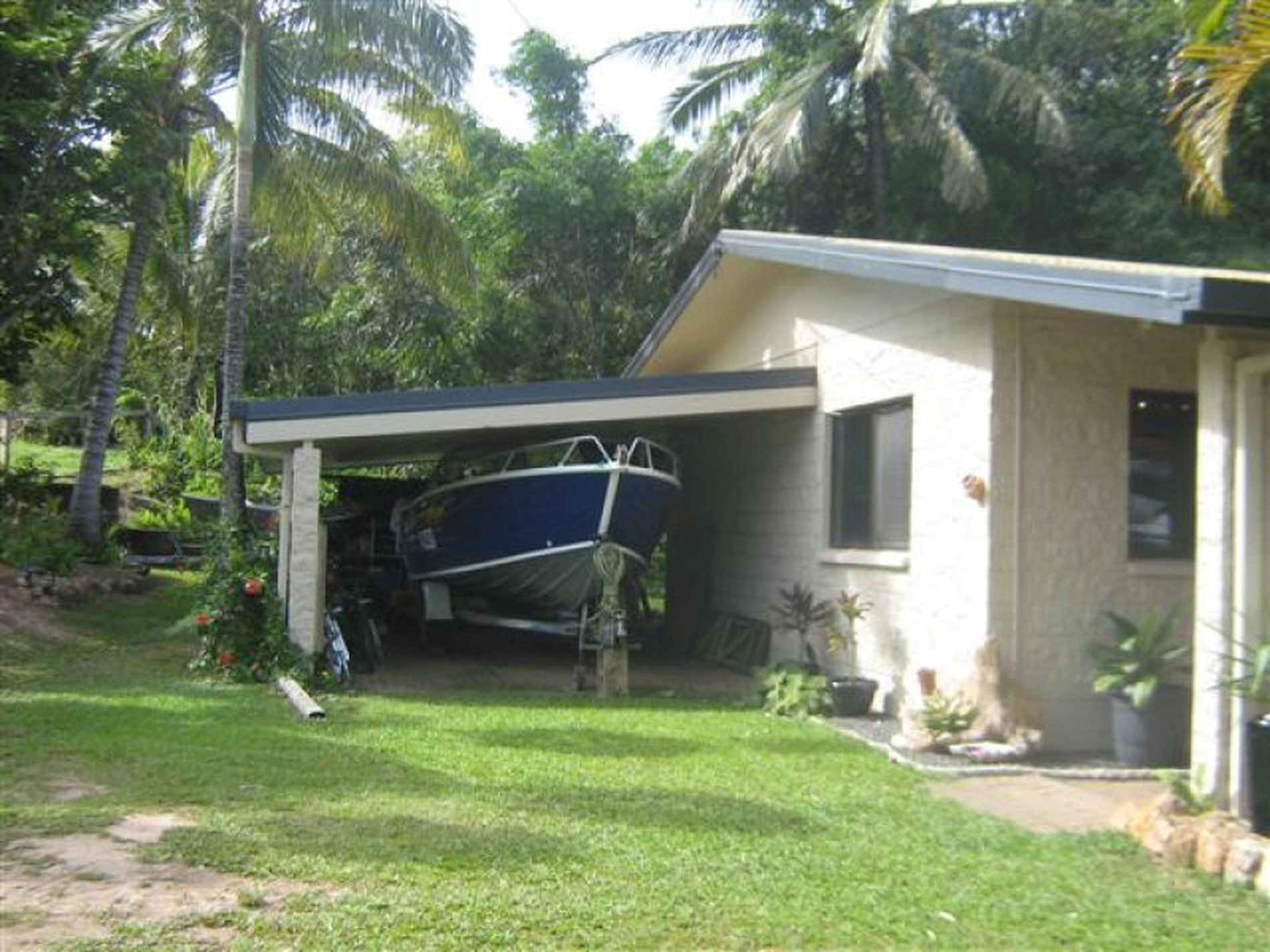 A car/boatport attached and a big garden shed. Tropical manicured gardens and a bush walkway with a pretty seasonal creek through a corridor of rainforest on the rear boundary.