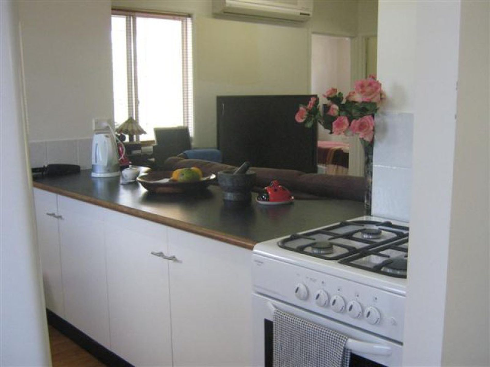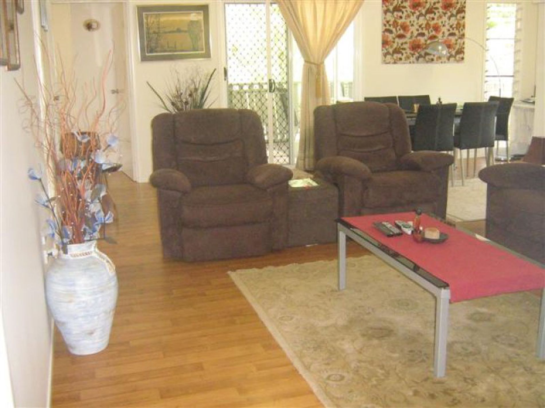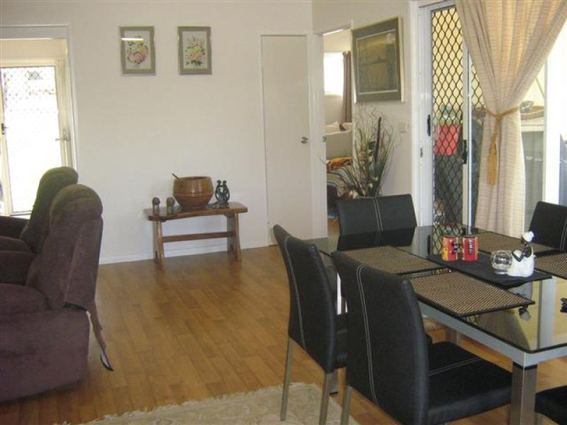 Double robes in all bedrooms, two way ultra modern bathroom, walk in pantry with functional kitchen, open plan living and dining area and split system airconditioning plus ceiling fans and the whole home is fully screened.