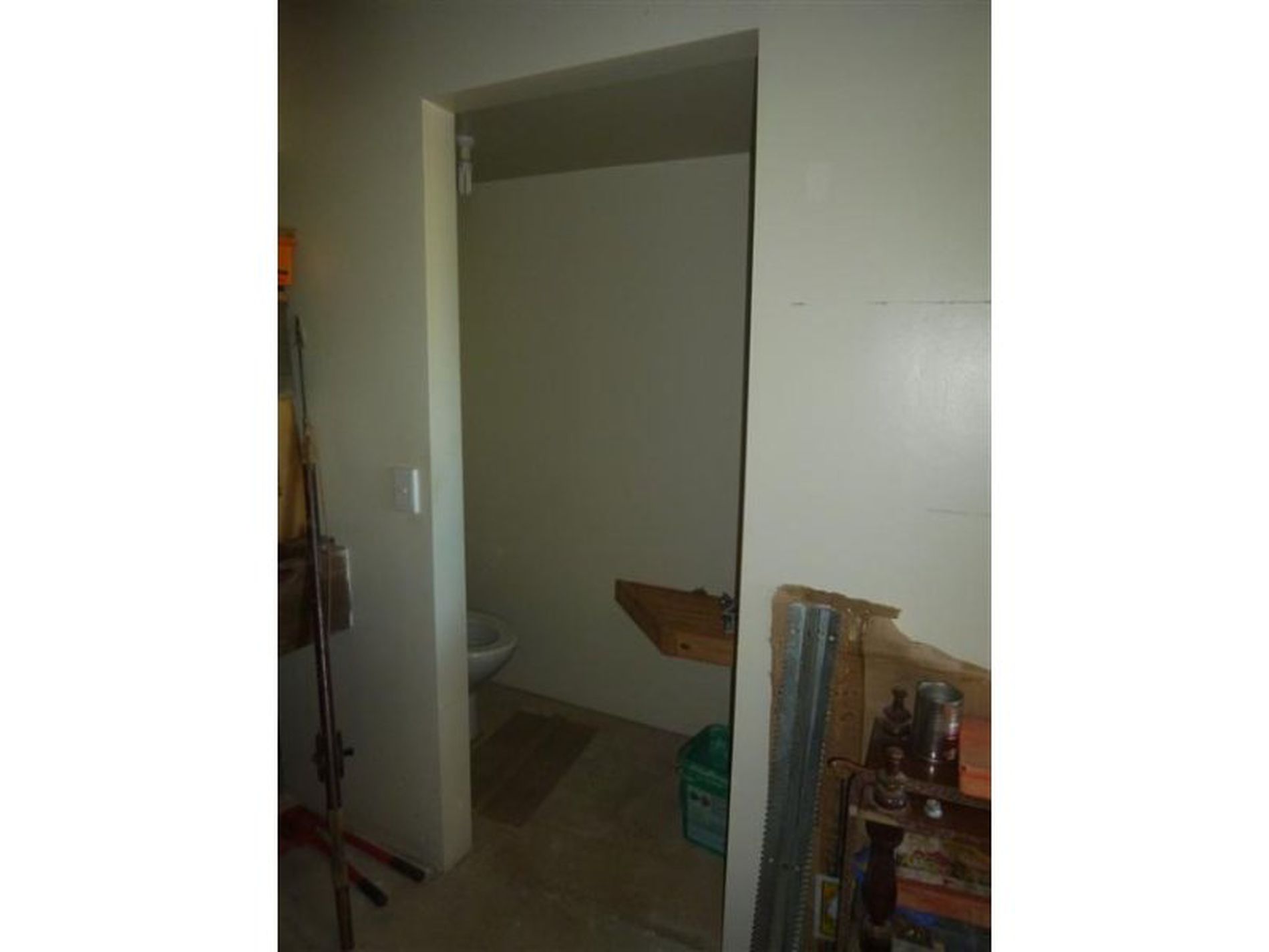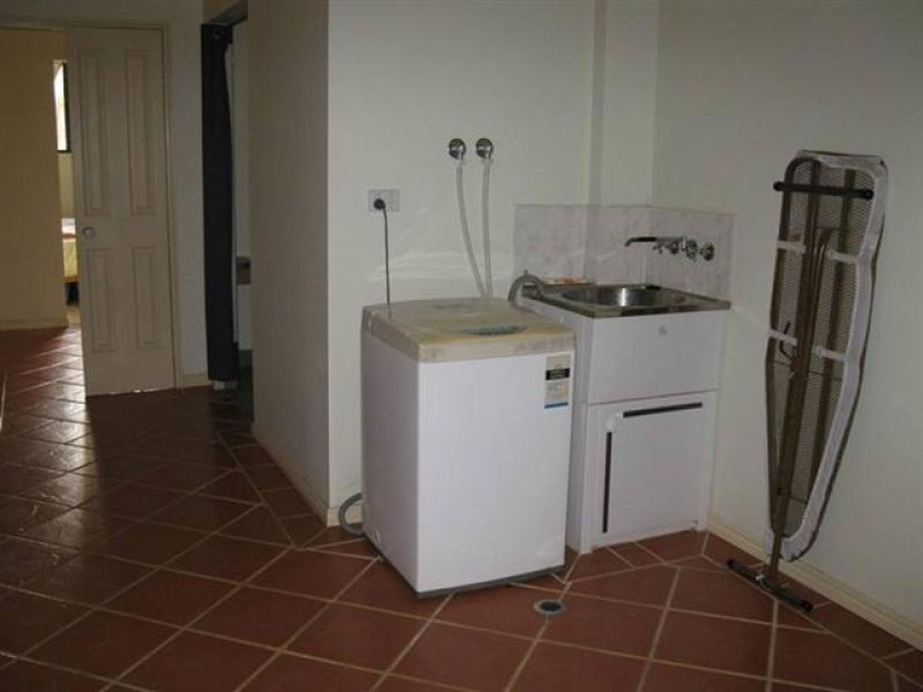 The bedroom, linen cupboards, bathroom, toilet and laundry are at the rear of the living area with a door through to the garage.