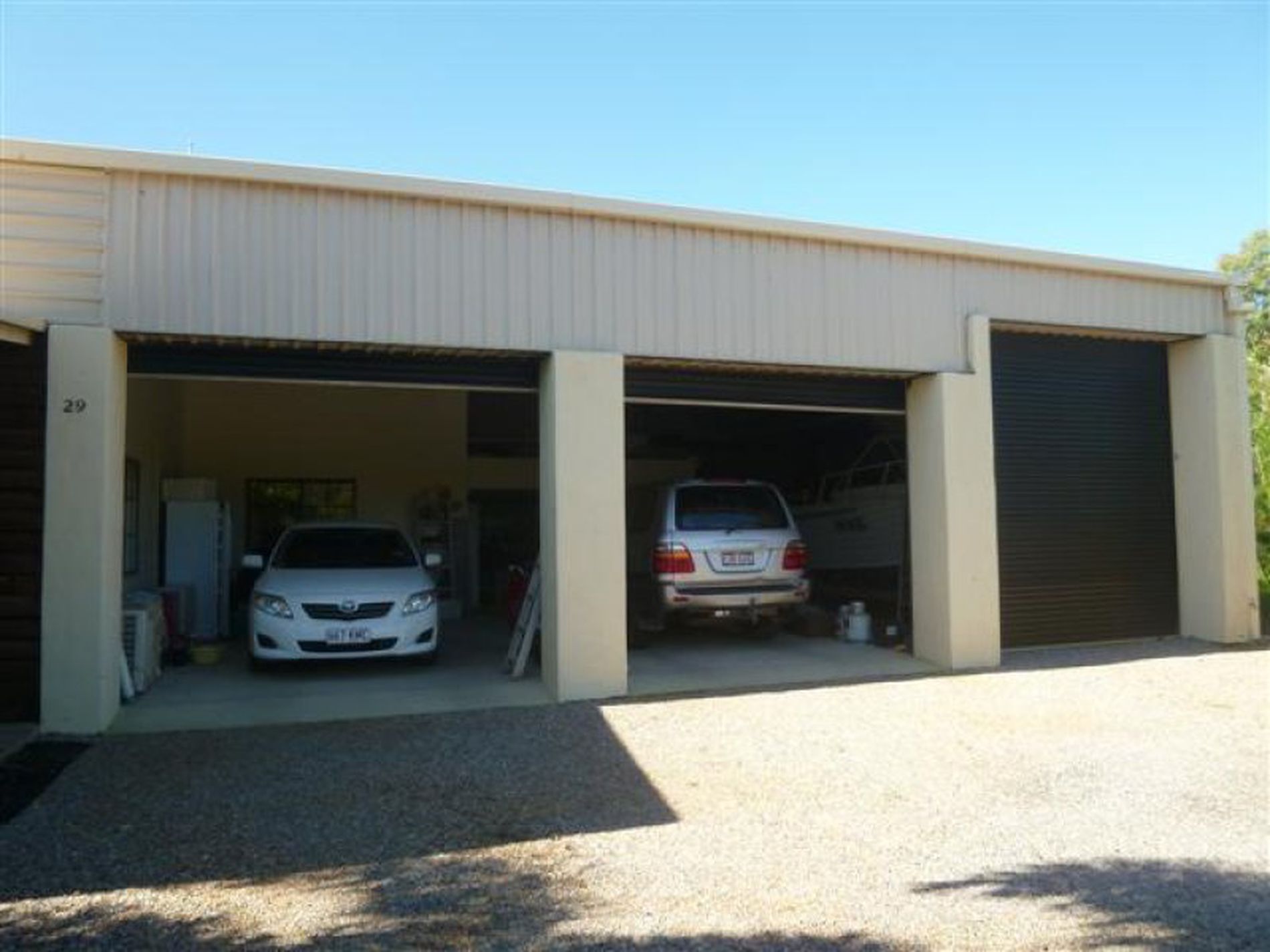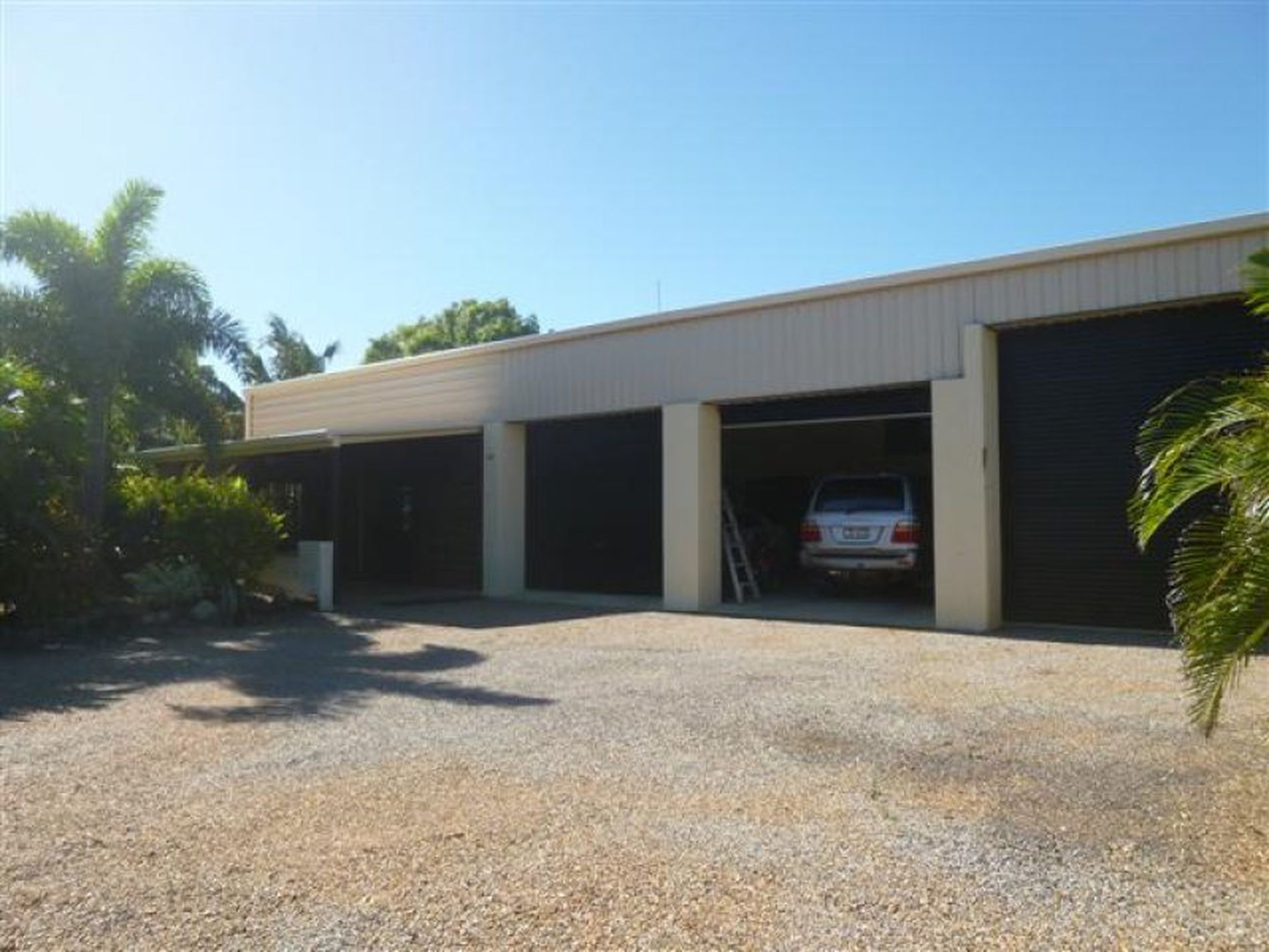 The walk through attached garage has 3 remote controlled roll up doors, one high enough to house a boat on a trailer, a separate workshop with its own toilet and heaps of mezzanine storage space.