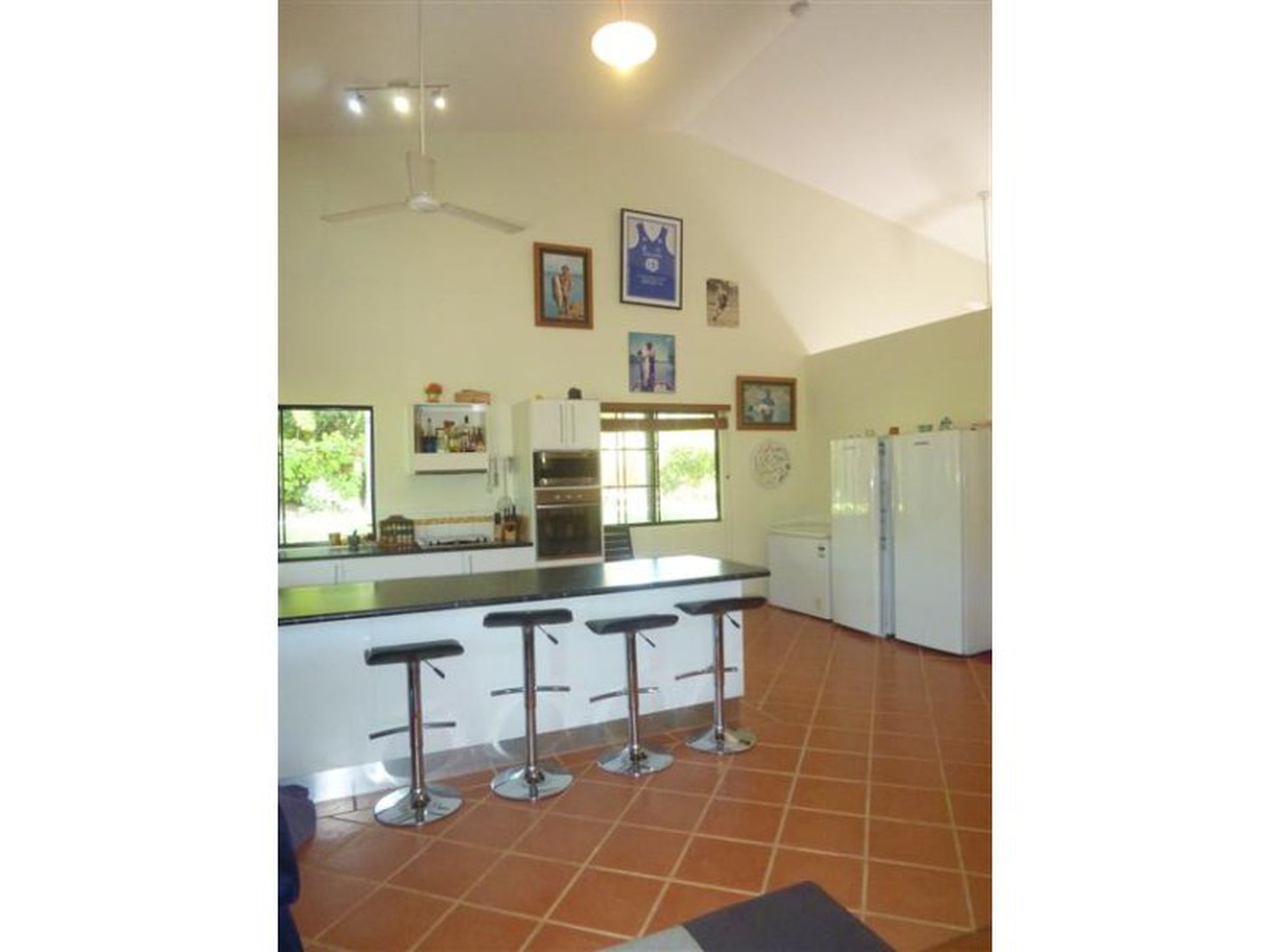 Terra Cotta coloured tiled flooring throughout and the special feature inside is the 6 meter high cathedral ceilings creating excellent airflow.