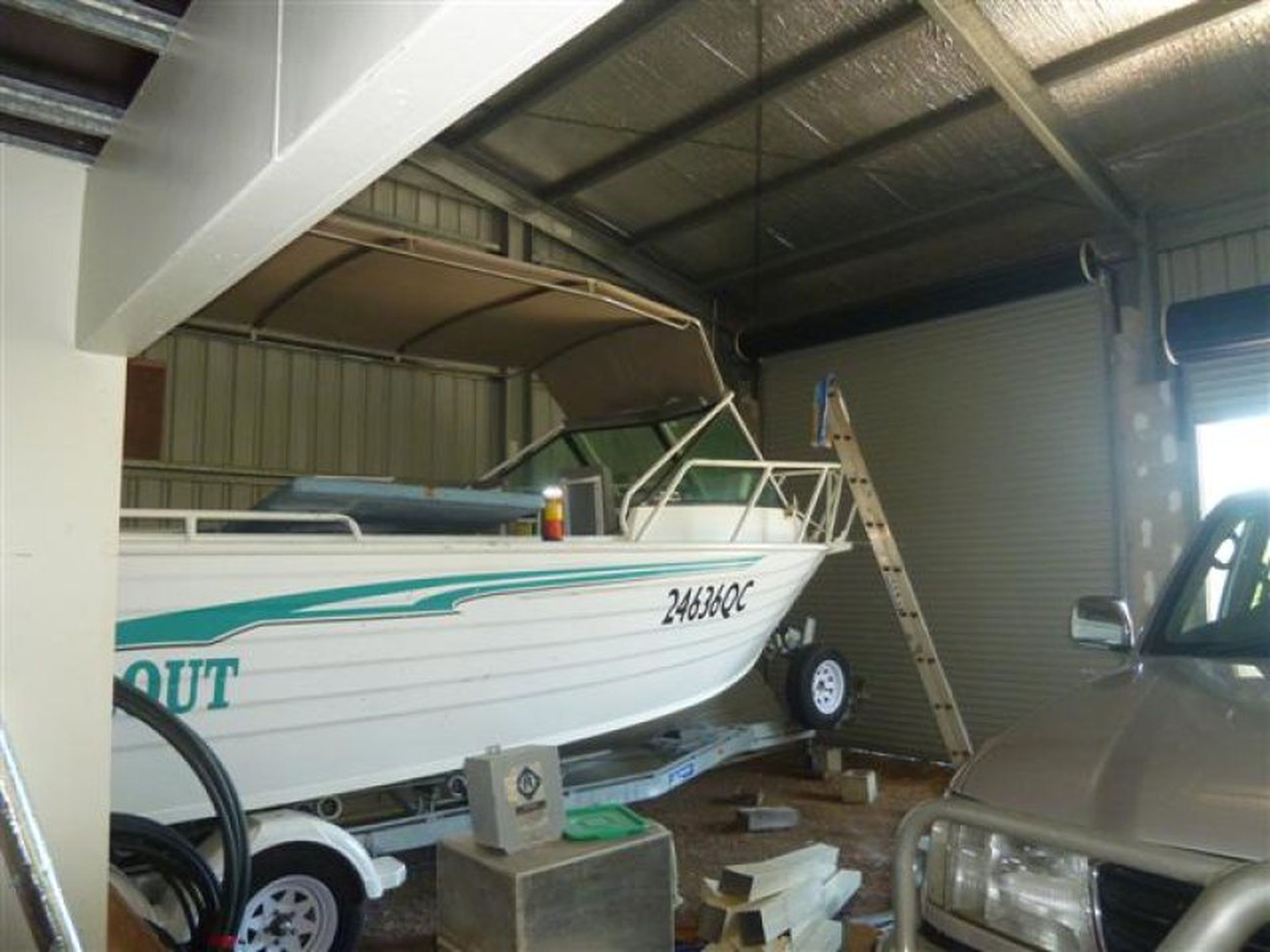There is also a garden shed in the back yard and a rainwater tank attached to the house gutters.