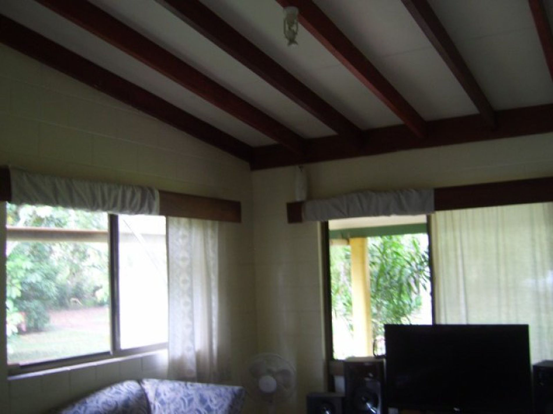 The comfortable 3 bedroom house is very private yet the grounds are open and sunny, with a perimeter of clumps of bamboo, trees and bushes.