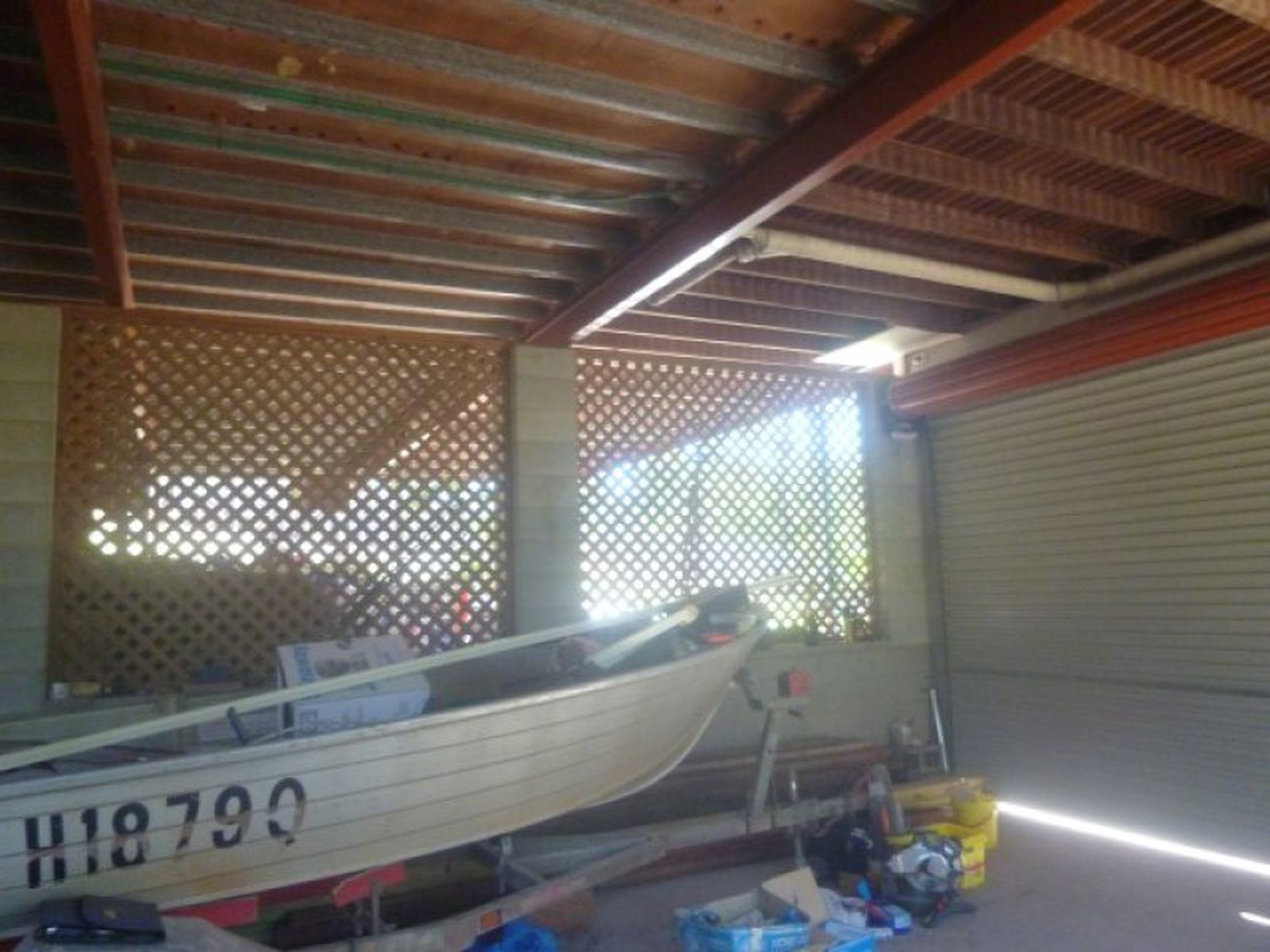 Heaps of storage space, partitioned off with a trellis.