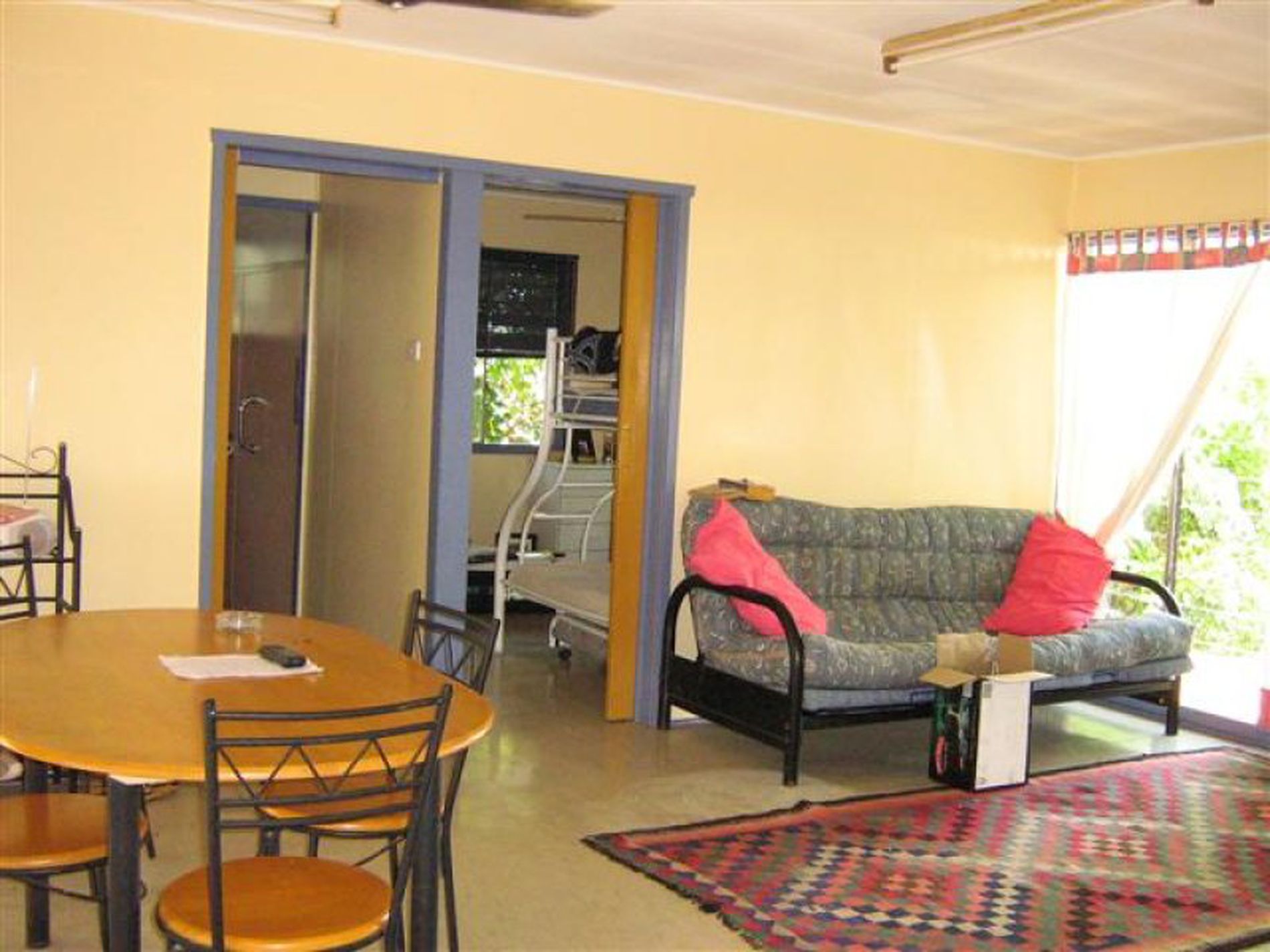 2 bedroom home on 1012sqm, furnished with fridge, double bunks, double bed, table/ chairs, curtains, washing machine and ceiling fans. Carport attached. Walking distance to CBD.