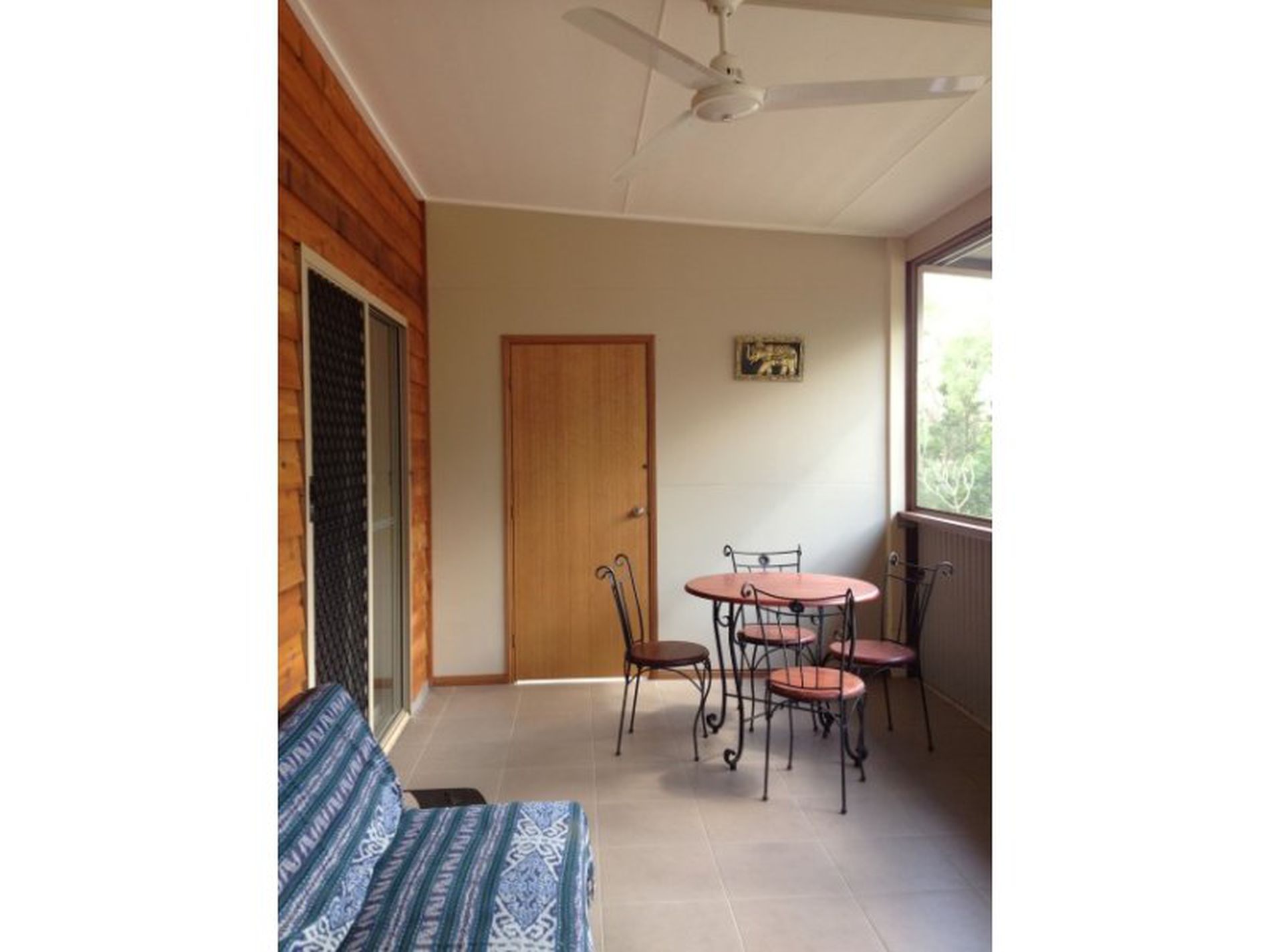 The enclosed veranda has a table and chairs and is the perfect place to sit after a hard days work. Electricity is included in the rent