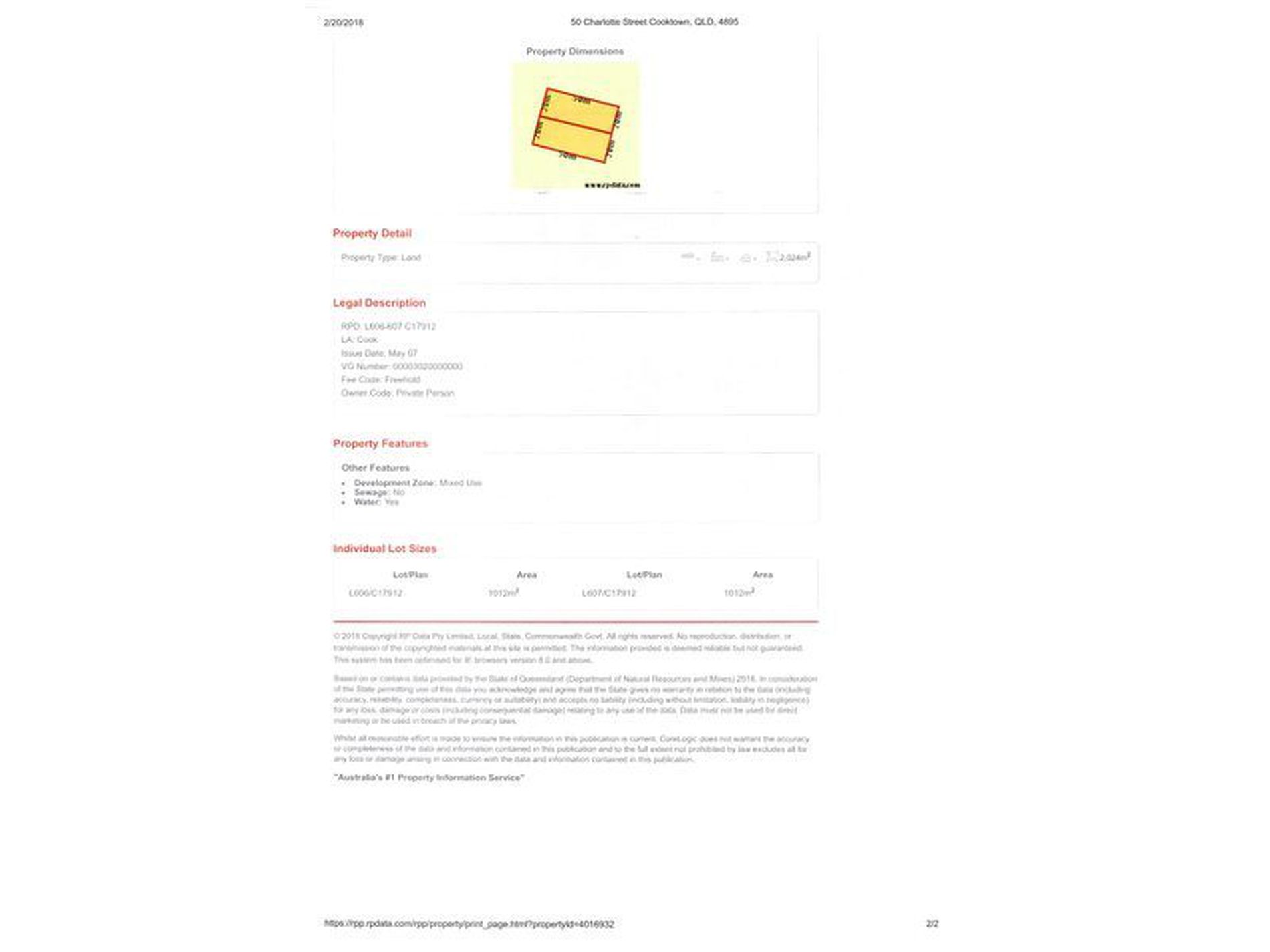 2 titles. Zoned "Mixed Use".