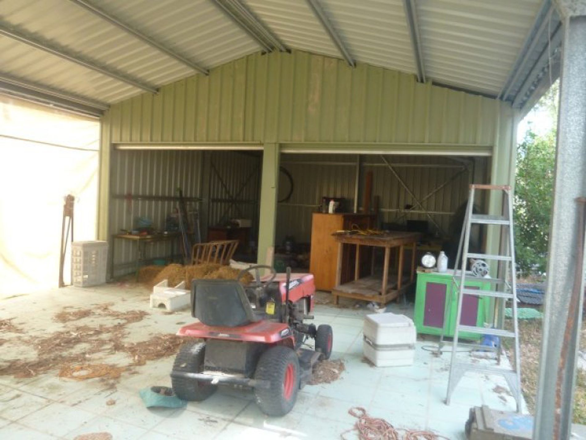 A council approved 6m x 12m shed connected to mains power. 2.89 acres block 7 km from town on an all weather sealed road.
