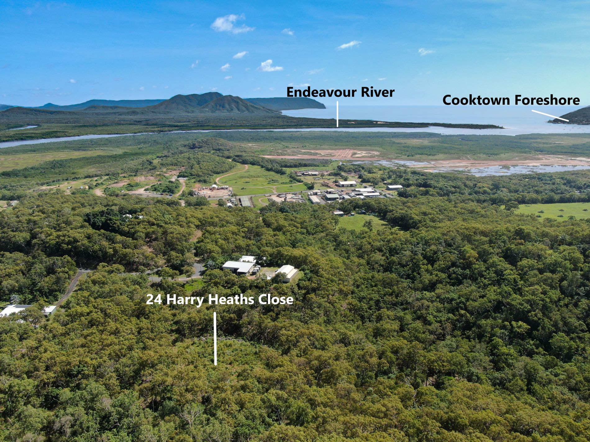 This 2 1/2 acre block of land is in a great location in a quiet cul de sac only 5 minutes from town and on mains power. Surrounded by bushland to give you that rural feel and some clearing previously done for a great position at the highest point of the block. The highest point on the property achieves views out to the Coral Sea and Cooktown Harbor. A 2 story house could potentially grasp 360 degree views of the Endeavour River, township and surrounding mountains and landscape. The property can be entirely cleared if needed.